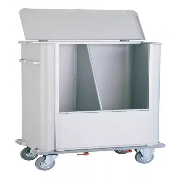 Medicimat vous présente le conteneur avec parois avant lisses, couvercle et pare-chocs, un équipement robuste en alliage léger AlMg3 avec une capacité de 714 litres et un châssis anti-torsion.