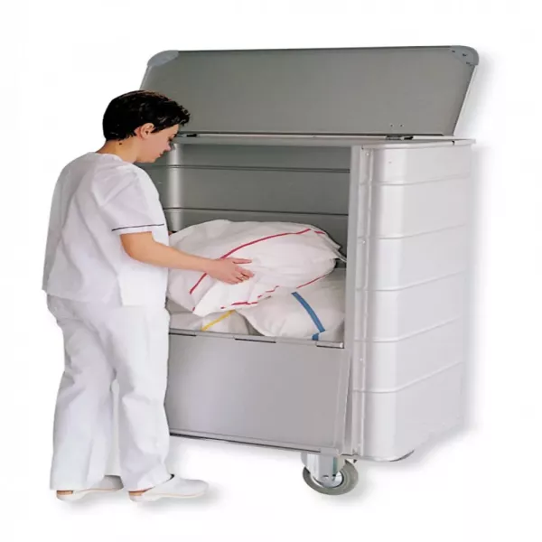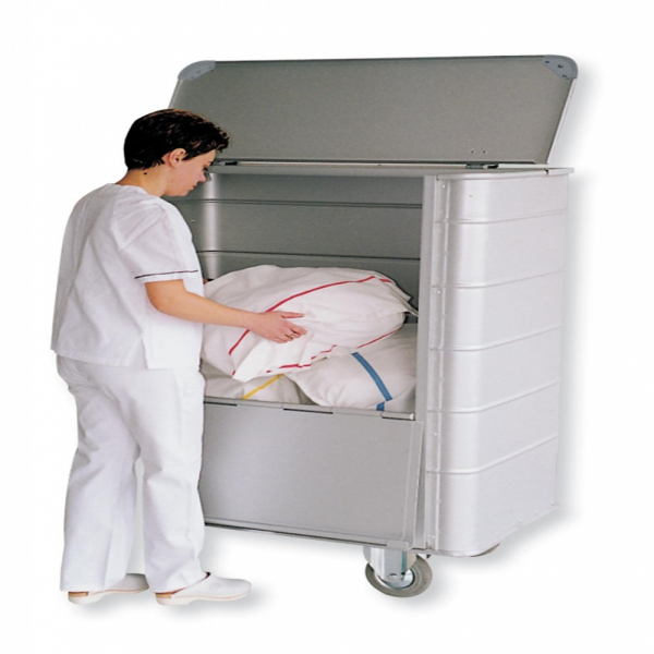 Medicimat vous présente le conteneur avec couvercle et parois avant. Robuste et fonctionnel, ce conteneur en alliage léger AlMg3 dispose d’une capacité de 714 litres et d’un système de couvercle pratique.