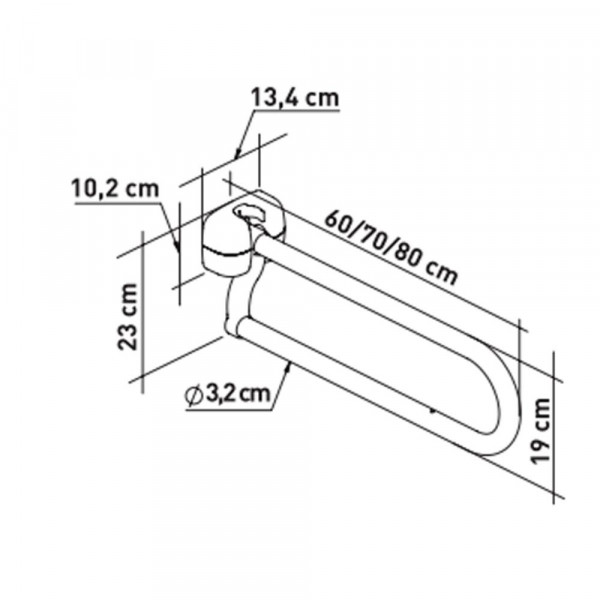 Medicimat vous présente la Barre pliante en forme de "U" en acier revêtu – 70 cm. Barre de soutien murale robuste et rabattable, conçue pour sécuriser les transferts et les mouvements autour des WC, avec une structure en acier résistante et revêtement anti-corrosion.