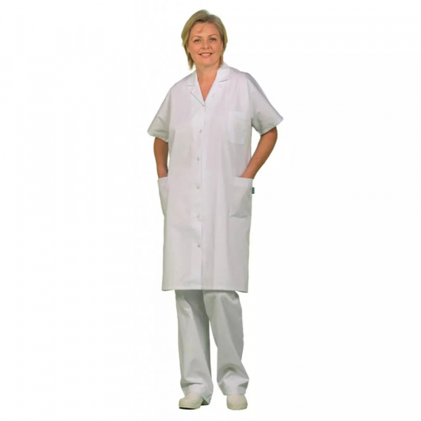 Medicimat vous présente la Blouse longue à manches courtes femme, une tenue professionnelle conçue pour allier confort, élégance et résistance, idéale pour les environnements médicaux et professionnels.