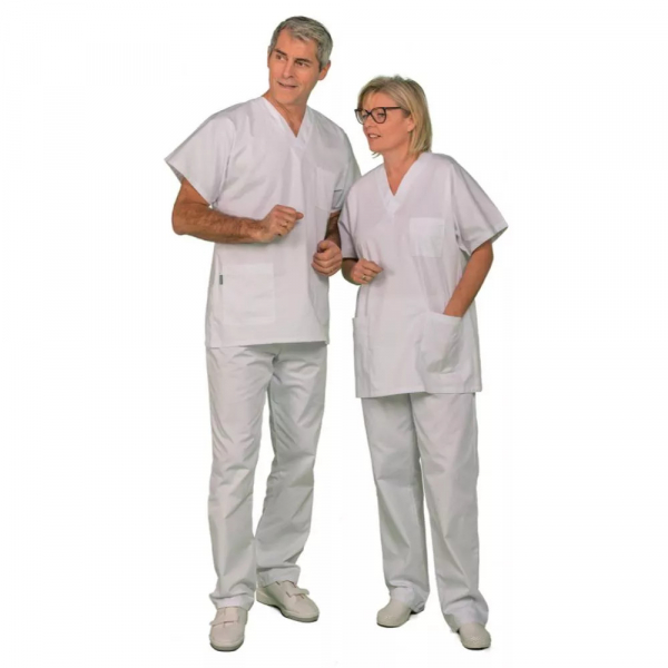 Medicimat vous présente la Blouse mixte à col en V et manches courtes, une tenue moderne et fonctionnelle, parfaitement adaptée aux environnements médicaux et professionnels.