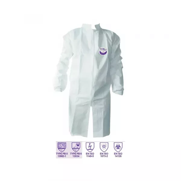 Utilisation : Portez la blouse par-dessus vos vêtements de protection et fermez-la à l’aide du zip