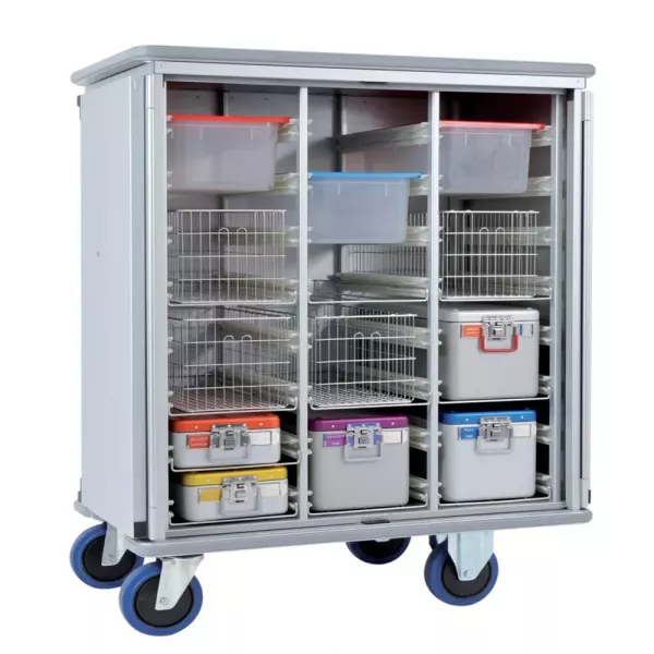 Medicimat vous présente le chariot armoire stérile à 3 sections Alvi, conçu pour le stockage et le transport sécurisé des dispositifs stériles en milieu hospitalier. Robuste, ergonomique et parfaitement étanche, il garantit une hygiène irréprochable.