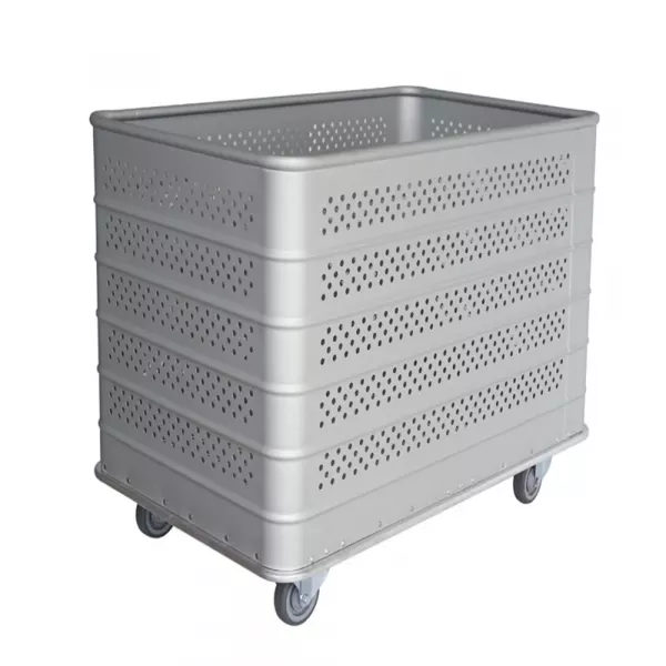 Medicimat vous présente le chariot en alliage léger perforé. Ce chariot robuste et léger en alliage AlMg3, traité par oxydation anodique, est idéal pour la manutention et le transport sécurisé de charges volumineuses. Il est doté de parois perforées et nervurées pour une meilleure résistance et d’un châssis renforcé pour une stabilité optimale.