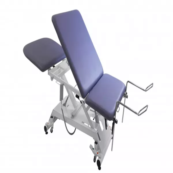 Accessoires : Cuvette inox de 2 litres, paire de douilles coulissantes pour étriers, porte-rouleau sur le dossier et la partie centrale.