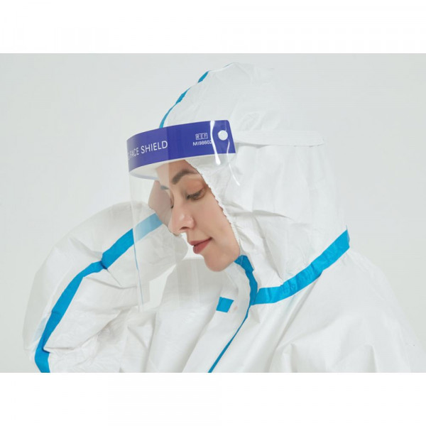Utilisation : Positionnez l’écran facial sur le front en veillant à ce que la mousse repose confortablement contre la peau. Passez l’élastique autour de la tête pour un maintien stable. Vérifiez que la visière ne touche pas le visage pour éviter toute gêne.