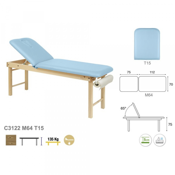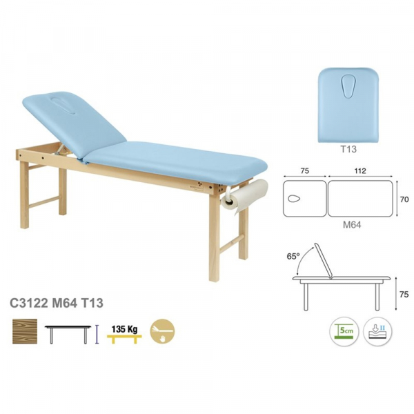 Medicimat vous présente la table de massage fixe en bois Ecopostural, une solution professionnelle combinant élégance, stabilité et confort grâce à son dossier inclinable jusqu’à 70° et son épaisseur de mousse de 5 cm.