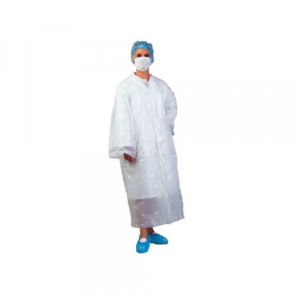 Dimensions : - Masque : 72 x 200 mm - Blouse : 120 x 70 cm - Charlotte : diamètre 50 cm - Sur-chaussures : 150 x 350 mm