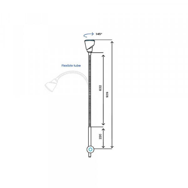 Bras : Bras flexible recouvert d’une gaine blanche lisse rétractable, orientable à 360°, hygiénique et facile à désinfecter