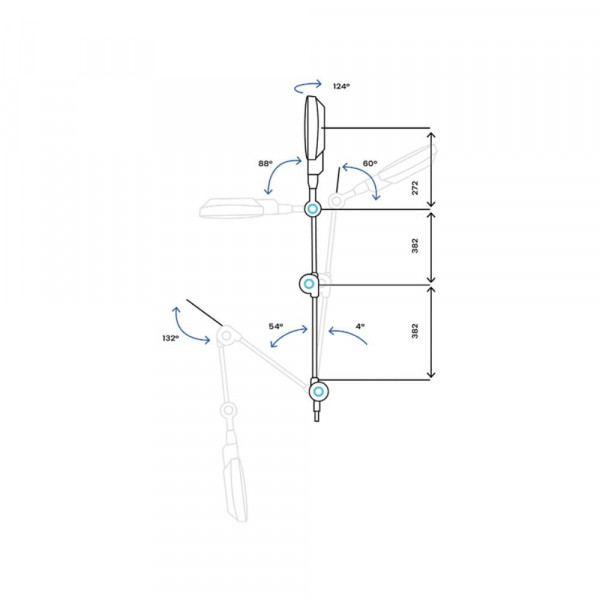 Installation : Fixez solidement la base murale sur une surface plane et proche de la zone d’examen. Assurez-vous de l’accessibilité du bras pour ajuster la direction du faisceau selon vos besoins