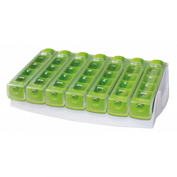 Medicimat vous présente le Pilulier DOLCIMO 7, un plateau hebdomadaire pratique et modulable, conçu pour une organisation efficace de votre traitement sur 7 jours.