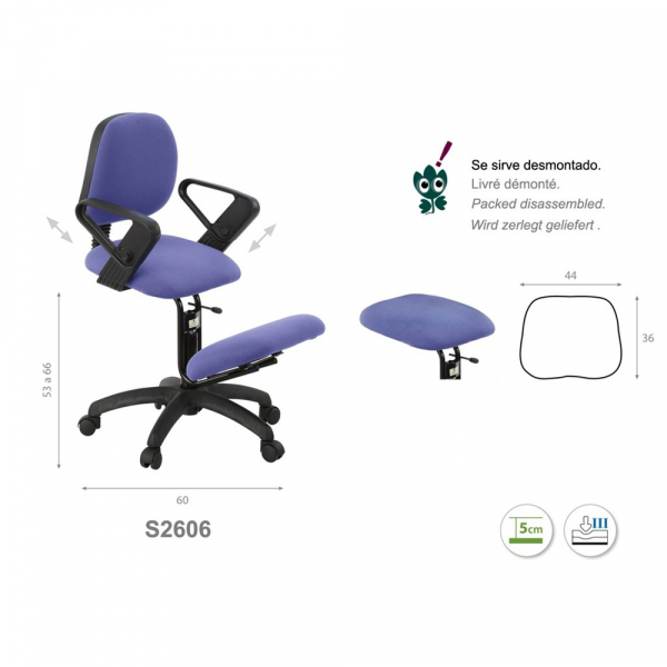 Type d'assise : Inclinée, configuration agenouillée
