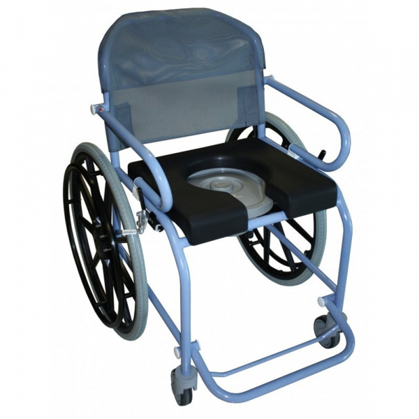 Medicimat vous présente le fauteuil de douche Nouméa 100, modèle large. Conçu pour un confort optimal, ce fauteuil dispose de 4 roues, d’une assise large de 45 cm et d’accoudoirs escamotables.