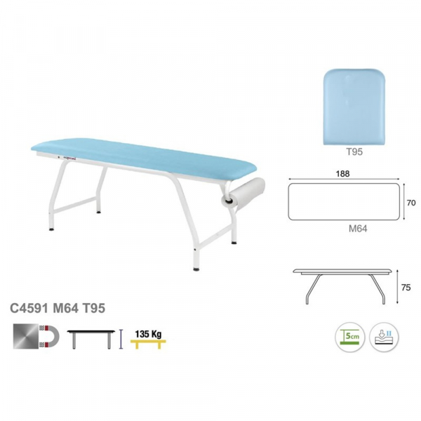 Confort : Matelas d’une épaisseur de 5 cm offrant un soutien équilibré et un confort optimal pour les patients.