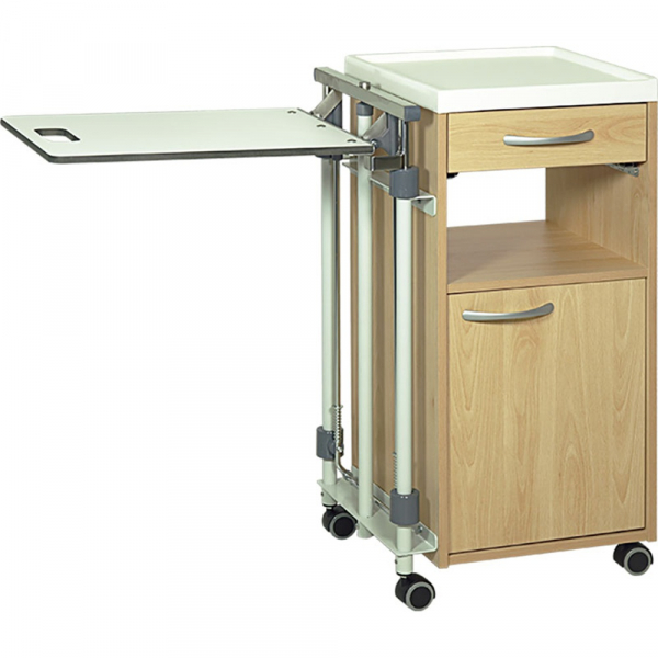 Medicimat vous présente la table de chevet avec tablette, un meuble fonctionnel et ergonomique, doté d’une tablette rabattable réglable en hauteur et d’un placard réversible pour une adaptation optimale à votre espace.