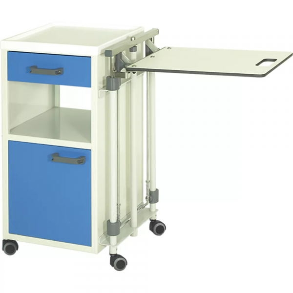 Commandez dès aujourd’hui la table de chevet métallique avec tiroir, porte-revues, placard et tablette pivotante sur Medicimat et profitez d’un mobilier hospitalier alliant praticité et durabilité.