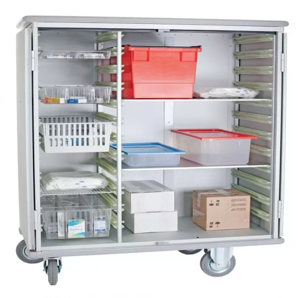 Medicimat vous présente le Armoire mobile à étagères réglables et module ISO-NORM, une solution robuste et fonctionnelle avec une structure en alliage léger anodisé et une capacité de charge allant jusqu’à 250 kg.