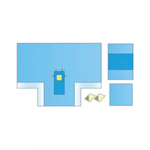 Utilisation : Ouvrez la trousse directement en salle stérile. Positionnez d’abord le couvre-table pour organiser les instruments, puis installez progressivement les champs en respectant les zones de stérilité. Le champ en T est à positionner en dernier autour du site opératoire.